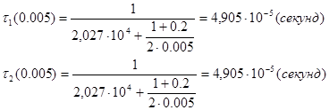 Время должно выбираться как минимальное из двух возможных значений. Первое значение - величина, полученная из последней формулы. Второе значение - та величина, которая определяется из условия ограничения загрузки системы - р. Обычно эта величина не должна превышать 0,5.