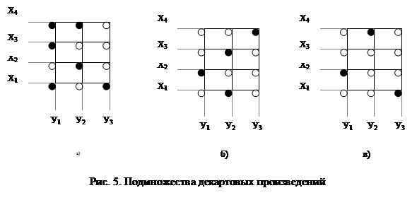 На рис. 5 в) показано подмножество декартова произведения, являющееся частично определенной функцией.