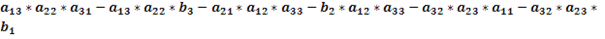 det B=(-1)2*((a31*a22*a13+a21*a12*a33+a32*a23*a11)-(a33*a22*a11+a12*a23*a31+a21*a32*a13))