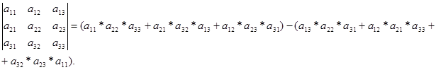 det A=(-1)0*((a11*a22*a33+a12*a23*a31+a21*a32*a13)-(a13*a22*a31+a21*a12*a33+a32*a23*a11))