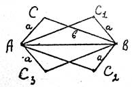 Пример 2. Построить циркулем и линейкой треугольник так, чтобы одной его стороной служил данный отрезок АВ , а две другие его стороны были равны двум данным отрезкам а и в.