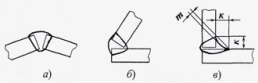 Рис. 1.5. Нахлесточные (а, б) и торцовое соединения (в)
