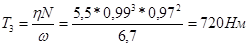 Передаваемые крутящие моменты рассчитываем с учетом потерь возникающих в подшипниках, зубчатых колесах и т.д. по формуле :