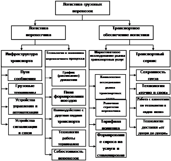Таким образом, грузовладелец понимает под транспортной логистикой в первую очередь возможность выбора того вида транспорта, который удовлетворяет его с точки зрения реализации критериев предпочтения. Поэтому главная задача перевозчика в рамках транспортной логистики – это формирование конкурентоспособных транспортных составляющих логистических систем экономических субъектов рынка (грузовладельцев), позволяющих удовлетворять их потребности не только с точки зрения возможности перемещения продукции, но и при обязательном выполнении требований, предъявляемых к качеству перевозки.