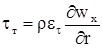 В этих уравнениях: wx и wr –составляющие скорости вдоль оси трубы x и радиуса r; h –энтальпия; P –давление; r –плотность; t и q –суммарное (молекулярное и турбулентное) касательное напряжение и поперечный тепловой поток, которые выражаются через кинематический коэффициент турбулентной вязкости et и коэффициент турбулентной температуропроводности eq; m –динамический коэффициент вязкости; l ‑коэффициент теплопроводности; Cp –теплоемкость.