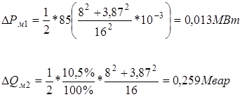 Sпив.2=S2+êSт2=(8+j3,87)+(0,051+j0,483)=8,051+j4,353 (МВА)