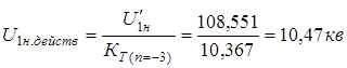В п.8.1 было получено U1н=9,912кв при среднем коэффициенте трансформации Кт1=10,952, то есть при нулевом ответвлении п=0
