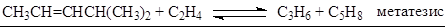 В реакции изобутилена и смеси бутенов-2 получается смесь пропилена и изоамилена. Особенно интересно сочетание в одной технологической схеме реакций метатезиса и димеризации олефинов