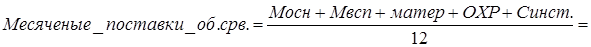 К оборотным средствам относятся расходы на материалы (основные и вспомогательные). Расчет запасов производится исходя из ежемесячных поставок, получим: