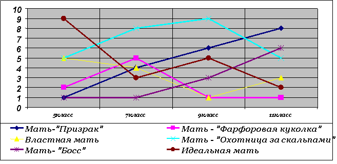 - в 11-ых классах также преобладает проблема бесконтрольности подростков. Но тут появляется типичная для этого возраста проблема выпуска детей во взрослую жизнь. Количество идеальных матерей очень низкое.