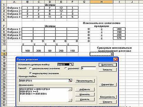 где аi — объем производства на i-й фабрике, вi — спрос вj-м центре распределения.